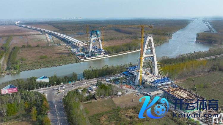 初冬时节,济邹高速神气栽种一线繁荣昌盛。京杭大运河两岸,吊臂挥舞,焊花醒目kaiyun官方网站,爬模上传来“叮叮当当”的施工声,两座高90多米的“A”型主塔耸入高空,酿成隔岸对立之势。随着无东谈主机镜头沿斜拉索延长的地点望去,一条“长龙”初现雏形。
