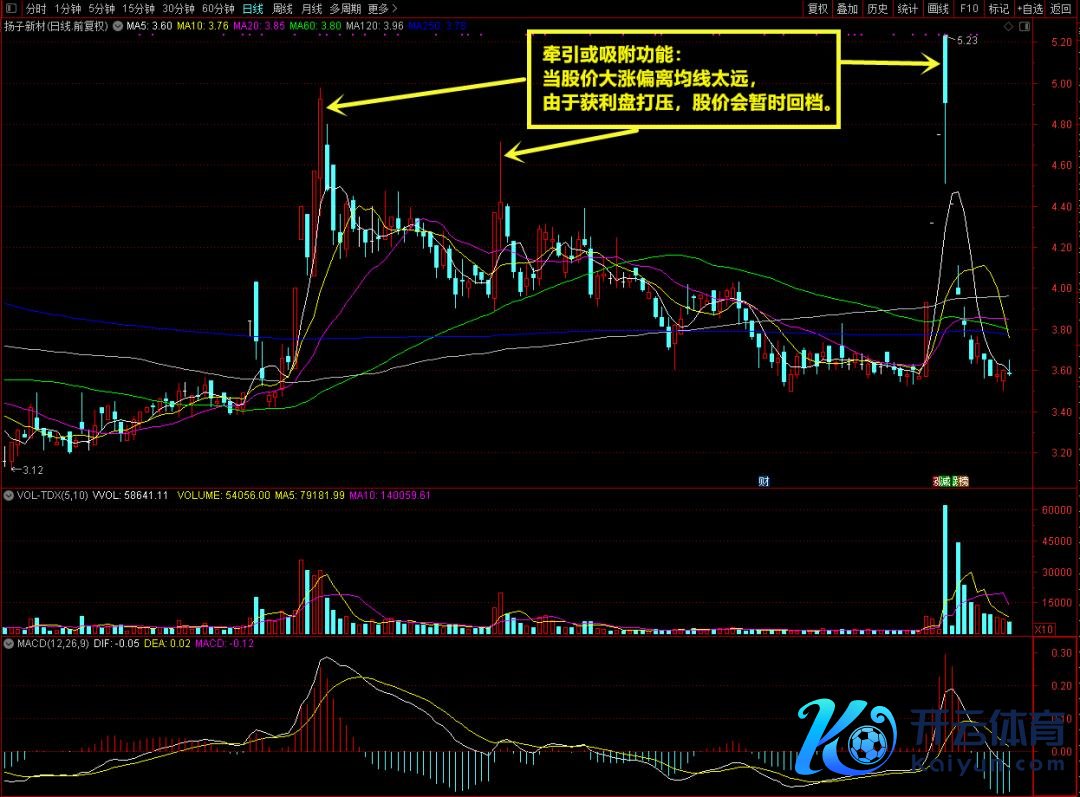 5)牵引或吸附功能:当股价大涨偏离均线太远,或中永恒均线进取挪动、短期均线向下挪动时,诠释上升趋势并莫得变嫌,而是由于成绩盘打压,股价会暂时回档。