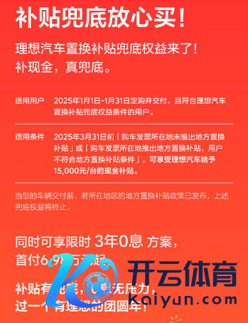 除积分及很是加电补贴外,也有不少车企像理思汽车遴选现款补贴的神志,理思汽车告示,2025年1月1日-31日定购并寄托的用户;在3月31日前“购车发票所在地推出所在置换补贴”或“购车发票所在地推出所在置换补贴,用户不安妥所在置换补贴条款”。可享受理思汽车15000元/台的现款补贴。