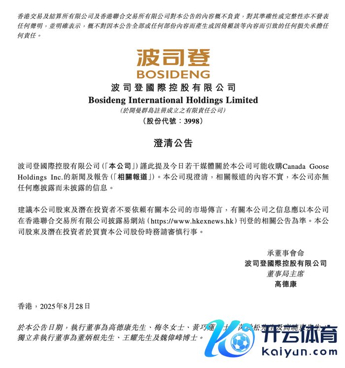 8月29日,波司登在港交所公告,公司谨此说起本日多少媒体对于本公司可能收购Canada Goose Holdings Inc.的关连报谈。本公司现知晓,关连报谈的执行作假,公司亦无任何应败露而未败露的信息。