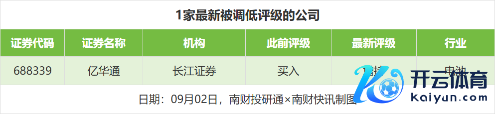 评级调低方面,9月2日,券商调低上市公司评级达到1家次,最新数据包括了长江证券对亿华通的评级从“买入”调低至“增合手”。