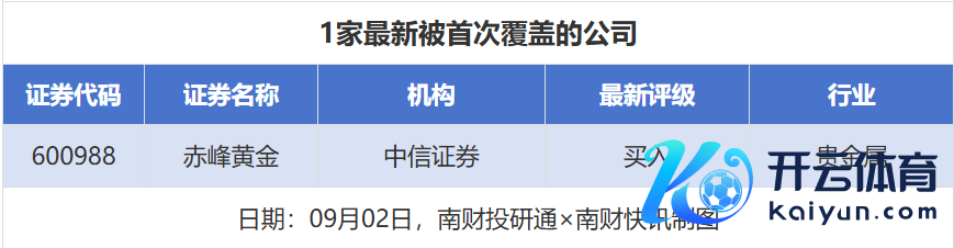 初次笼罩方面,9月2日券商共给出了1次初次笼罩,其中赤峰黄金赢得中信证券给以“买入”评级。
