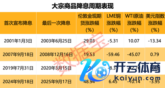 2000年以来,好意思联储降息接续伴跟着经济败落,市集避险情谊推进黄金价钱快速飞腾。关于其他巨额商品来看,降息周期世界经济无数下行,新兴市集的经济增长亦受到负面影响,拖累原油、工业金属等巨额商品价钱证实。