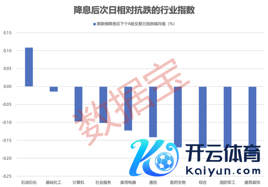 分行业来看,历次降息后下个A股交游日,A股行业指数跌多涨少。按均值来看,仅石油石化行业指数均值为正,平均飞腾0.11%。其他行业中基础化工、计算机、社会服务、家用电器、通讯相挣扎跌,跌幅均值在0.15%以内;食物饮料、修复材料、电子证实较差,跌幅均值跳动0.4%。