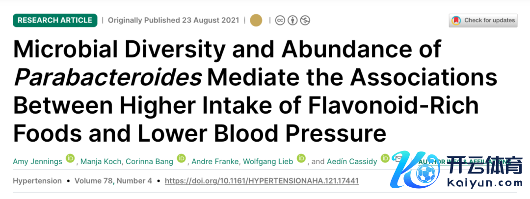 ②Jennings A, Koch M, et al. Microbial Diversity and Abundance of Parabacteroides Mediate the Associations Between Higher Intake of Flavonoid-Rich Foods and Lower Blood Pressure. Hypertension. 2021 Sep;78(4):1016-1026.