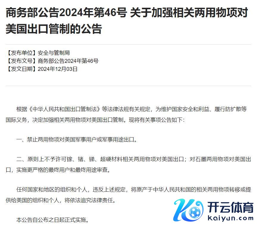 其次,我国晓谕加强有关两用物项对好意思出口料理。具体包括,膺惩两用物项对好意思国军事用户或军事用途出口;原则上不予许可镓、锗、锑、超硬材料有关两用物项对好意思国出口;对石墨两用物项对好意思国出口,扩充更严格的最终用户和最终用途审查。