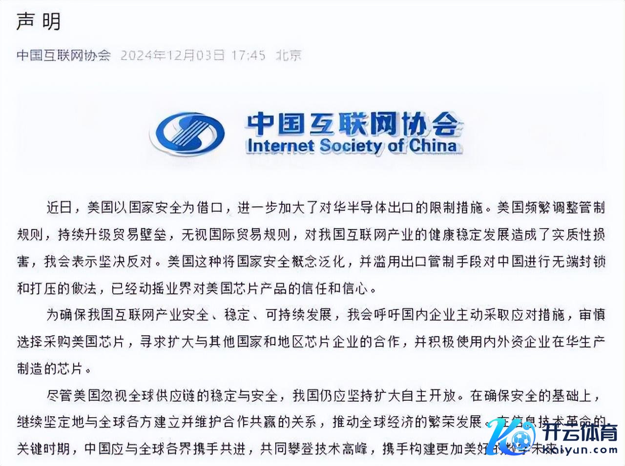 中国互联网协会在声明中指出,好意思国泛泛改变料理国法,握续升级贸易壁垒,无视国际贸易国法,对我国互联网产业的健康安逸发展酿成了本色性损伤。好意思国这种将国度安全主意泛化,并滥用出口料理技巧对中国进行无端阻滞和打压的作念法,仍是动摇业界对好意思国芯片居品的信任和信心。