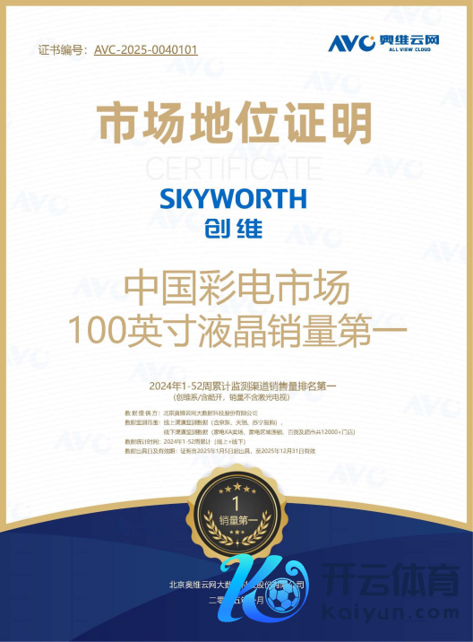 创维百吋电视系列得回寰宇销量冠军的光芒收货,是品牌工夫实力和家具线布局共同作用的驱逐。已往,创维将赓续给与“用户至上、改进起先”的发展理念kaiyun.com,不休擢升家具品性和用户体验,鼓动大屏电视商场的抓续富贵和发展。同期,创维也将赓续加强工夫研发,丰富家具线布局,为用户提供愈加千般化、智能化的电视家具,让每一个家庭王人能享受到高品性的不雅影体验。