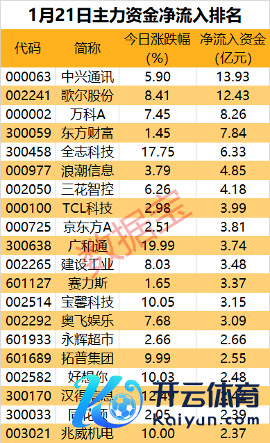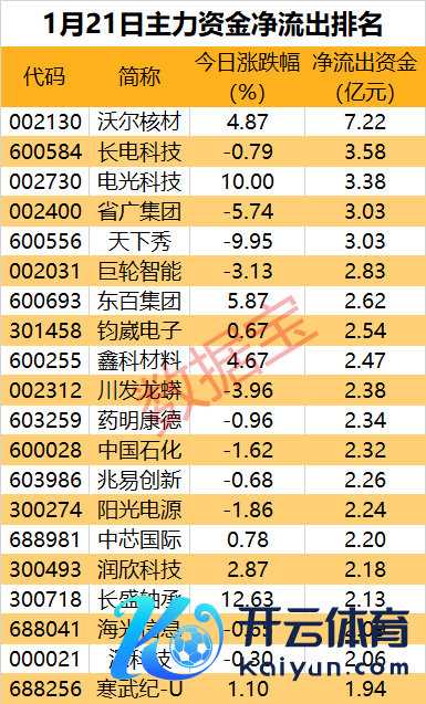 6个行业获主力资金净流入kaiyun官方网站。