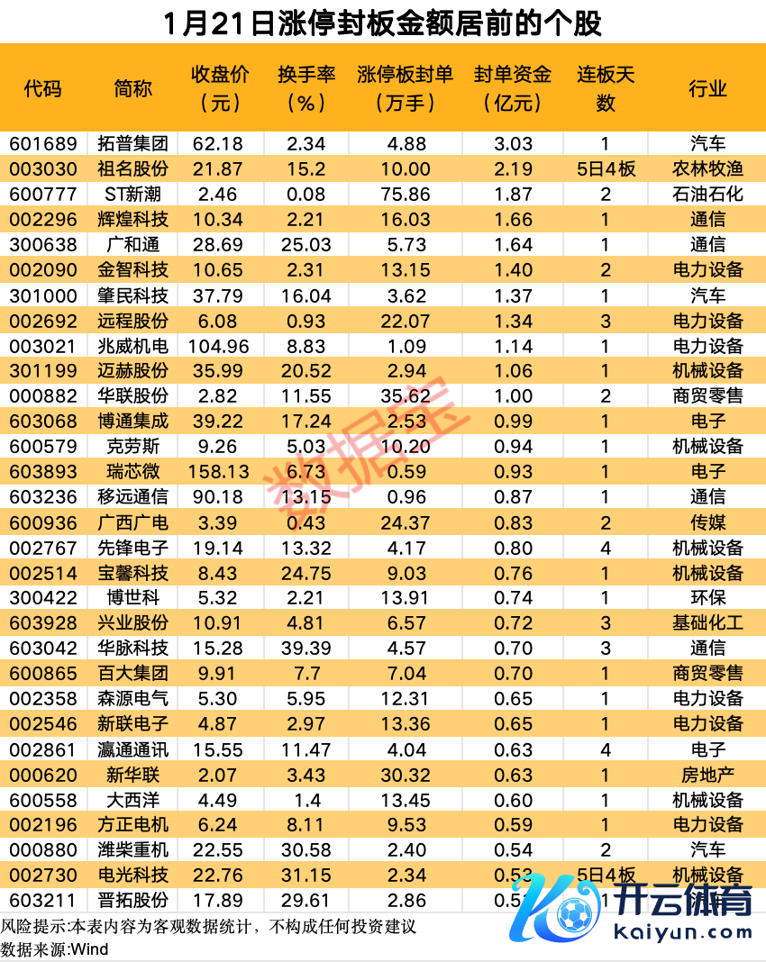 涨停个股:拓普集团、金智科技、肇民科技、兆威机电、迈赫股份、克劳斯、移远通讯、森源电气、纯碎电机、电光科技、晋拓股份、冀东装备、长华集团、福莱新材、东港股份