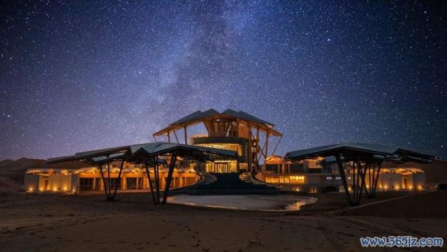 该旅社官网显示,星星旅社是中国国内首个以沙漠不雅星为主题的旅社,它坐落在宁夏中卫沙坡头旅游景区内,以五角星体式诡计联想,从高空俯视,犹如一颗颗星星洒落在大漠深处。